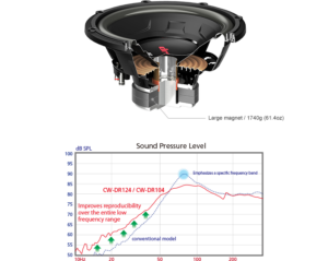 Deep Bass is achieved by focusing the speakers output to a lower frequency range than most conventional subwoofers. A large 61.4 oz. magnet helps produce these powerful low frequencies.