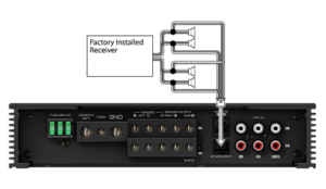 Speaker Level Input Harness is included to connect to speaker wires from factory installed receivers.